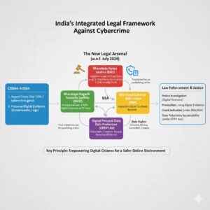 - Legal Framework: Strengthened by the BNS (substantive law on digital cheating/ID theft), BNSS (e-FIRs, digital evidence as primary), BSA (admissibility of electronic records), and DPDP Act (Right to Privacy, penalties up to ₹250 crore).